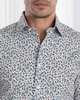 Blue Fine Floral Prints on White Shirt