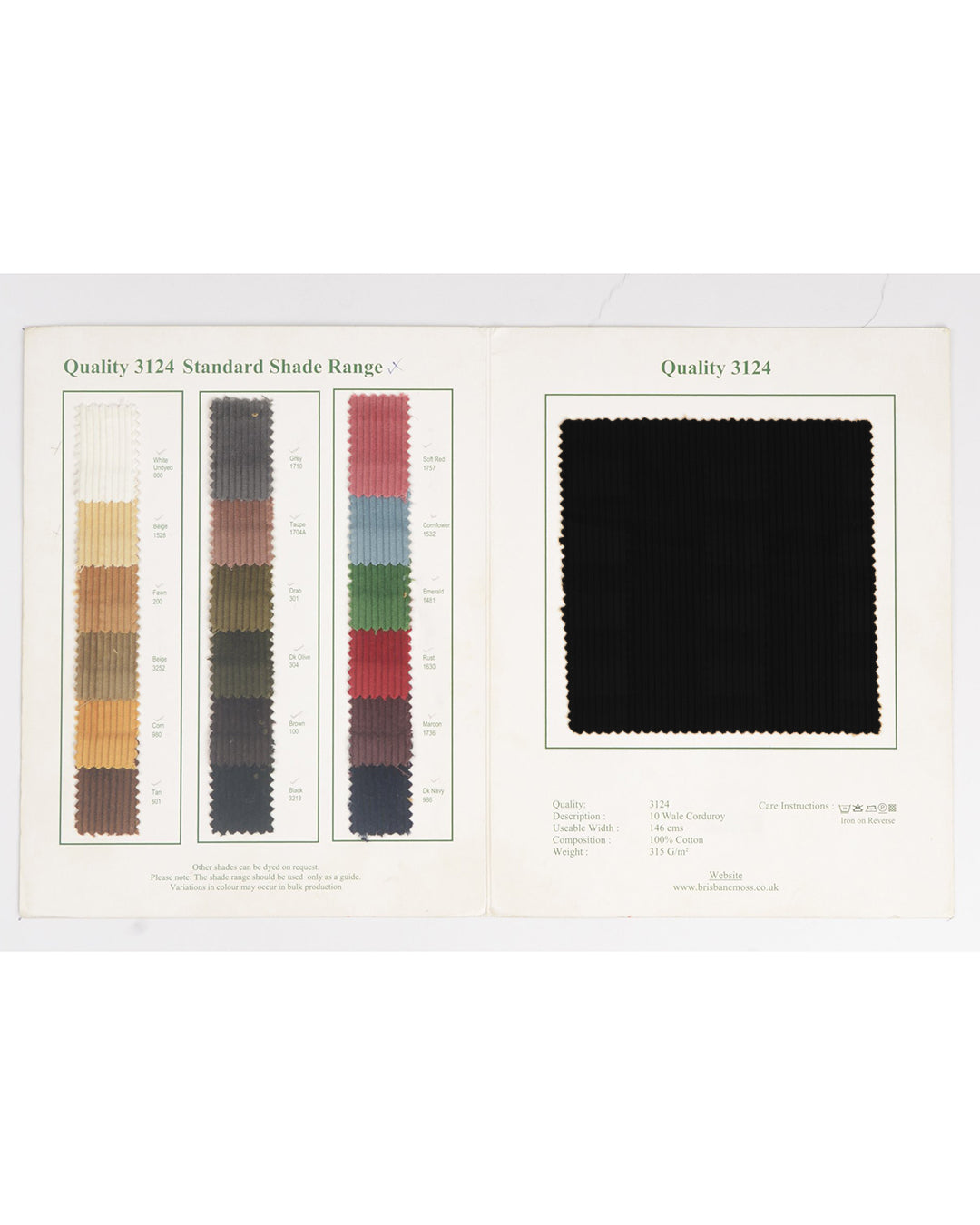 Brisbane Moss Black 10 Wale Corduroy