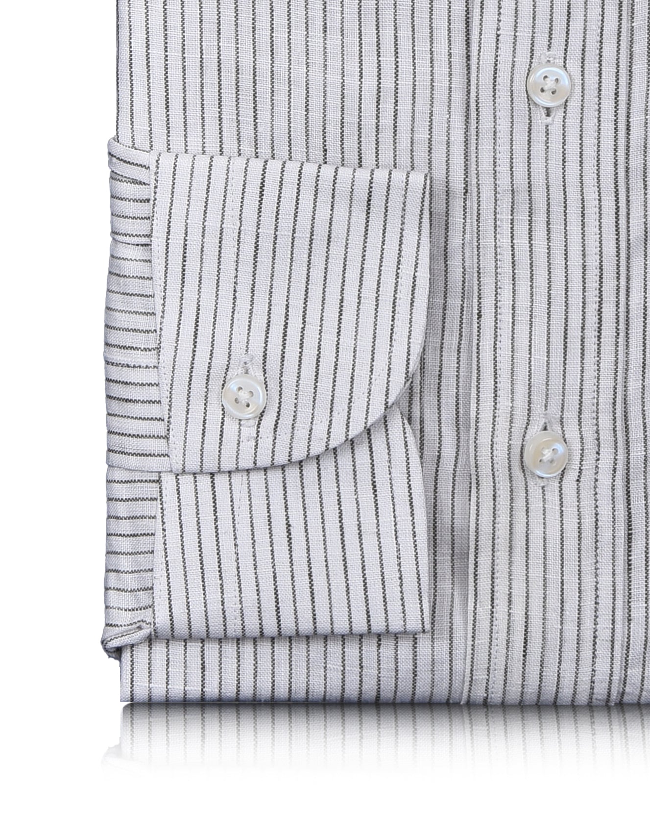 Linen: Olive Green Pin Stripes On White Shirt