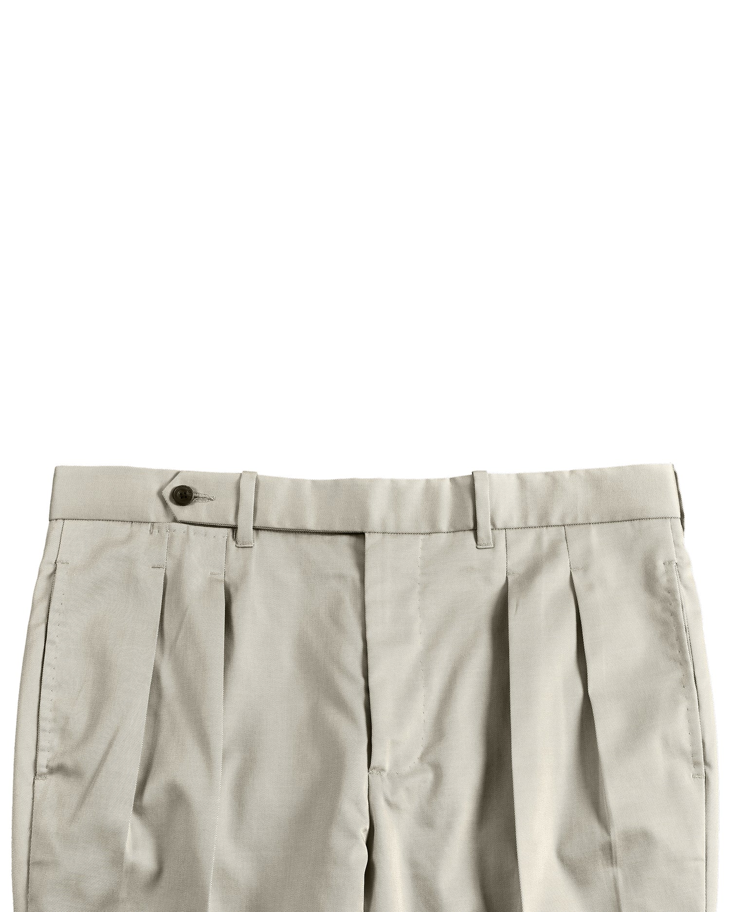 Pleated Ivory Cotton Twill Dress Pant