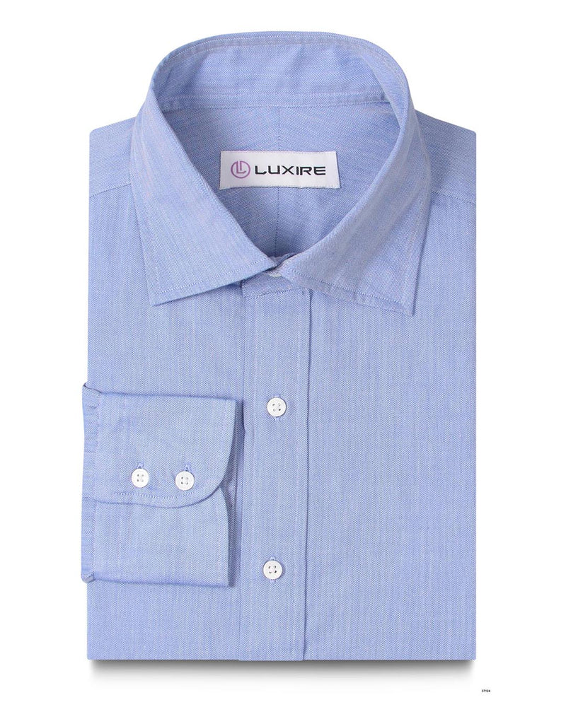 Neither too stuffy nor too casual! Constructed in a herringbone pattern, the fabric provides enough visual interest as compared to regular shirts. It strikes a balance between durability and comfort, with its incredibly soft feel. The sky blue shirt has a bit of a shine and goes well with your tailored suits. Opt for a French cuff and placket for formal occasions, or add a spread collar and a two-button cuff if you're planning to pair it with a business suit.